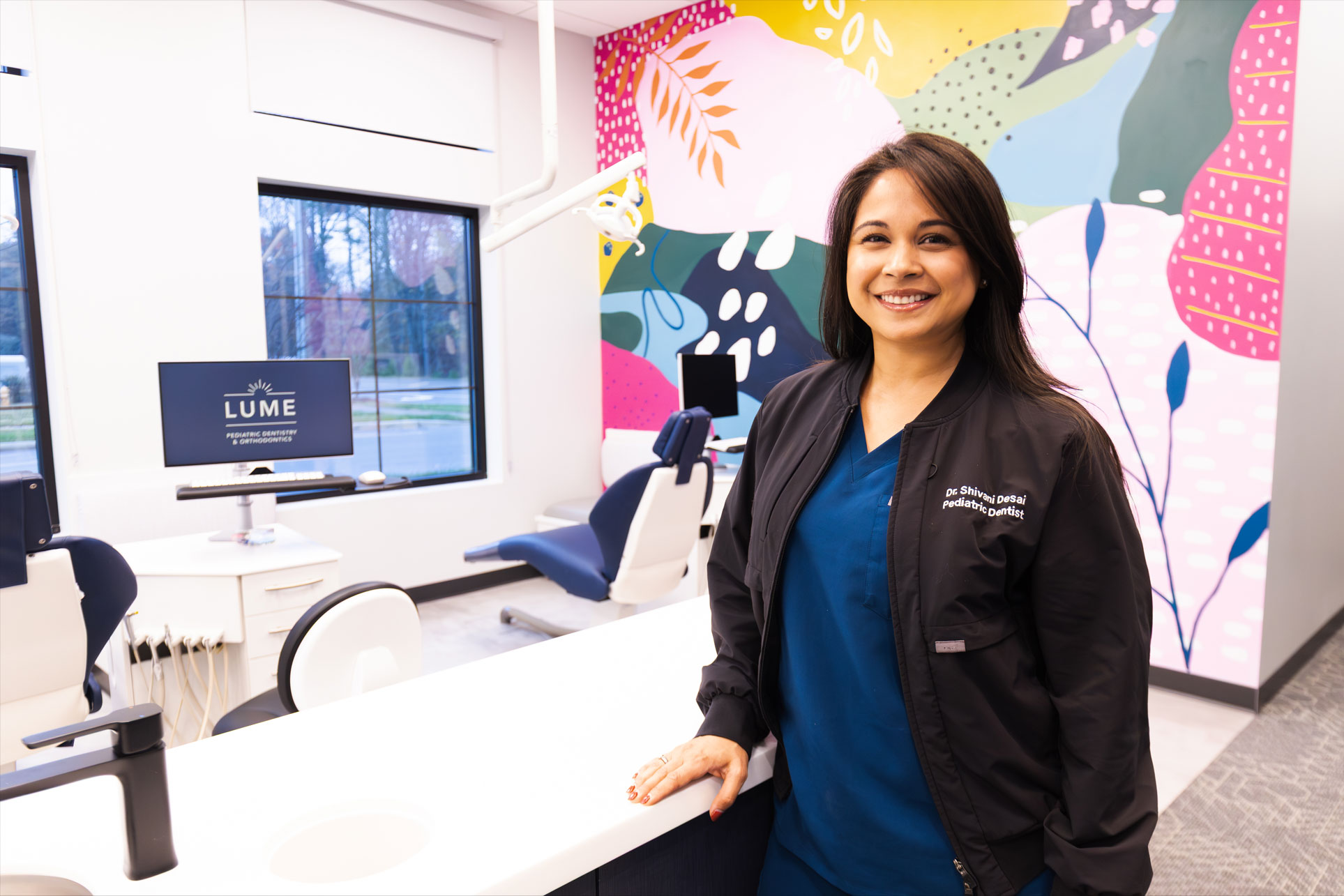 Dr. Shivani Desai is passionate about being part of her community and making a lasting impact on children's dental health from their first tooth through high school graduation. She believes that building strong relationships with her patients is essential to creating a comfortable, less intimidating dental experience.